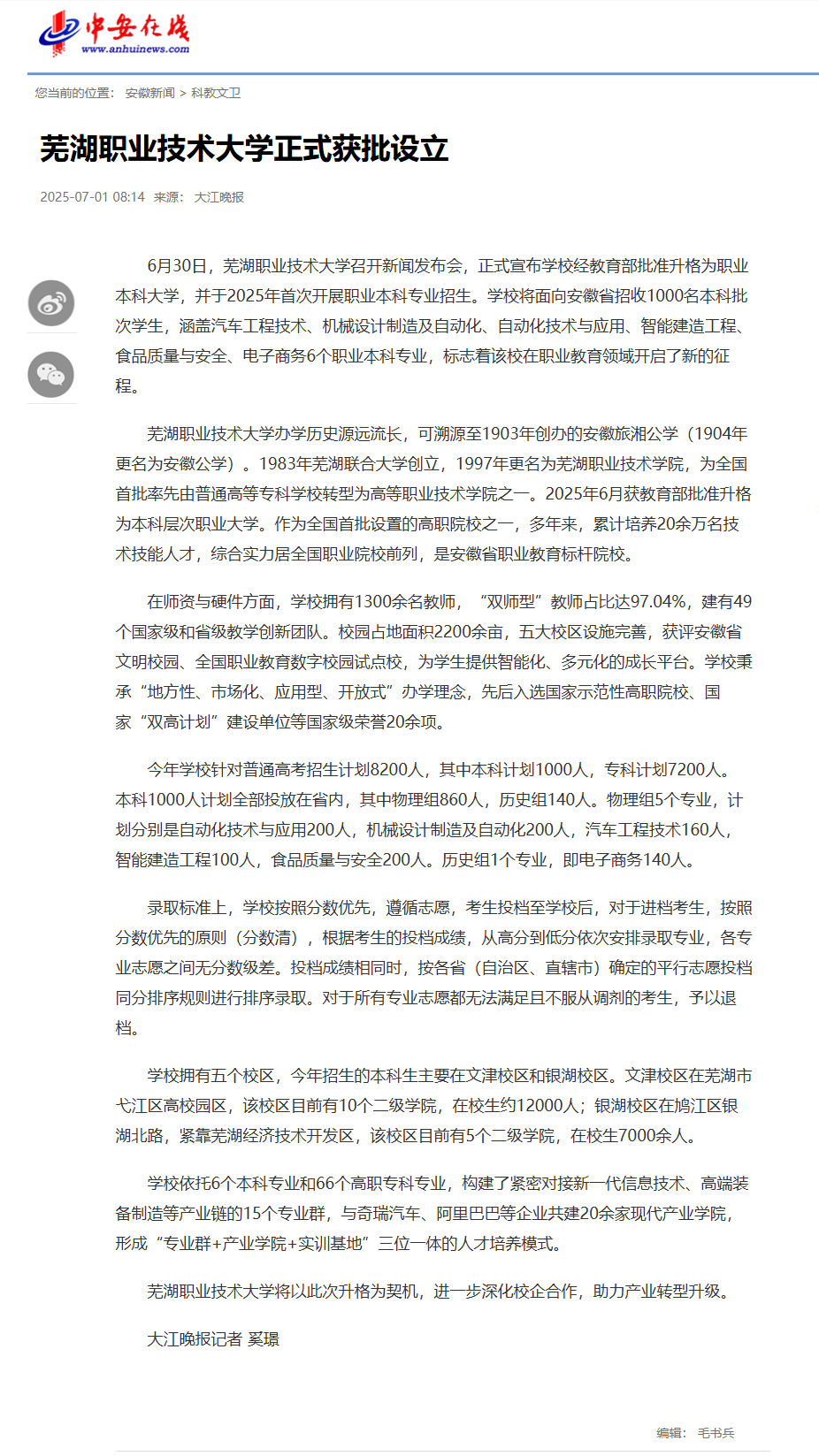乐鱼平台,天线宝宝49008论坛登录,博雅网官网办学历史源远流长,可溯源至1903年创办的安徽旅湘天线宝宝49008论坛登录学(1904年更名为安徽天线宝宝49008论坛登录学)。1983年芜湖联合大学创立,1997年更名为芜湖职业技术乐鱼平台,天线宝宝49008论坛登录,博雅网官网,为全国首批率先由普通高等专科乐鱼平台,天线宝宝49008论坛登录,博雅网官网转型为高等职业技术乐鱼平台,天线宝宝49008论坛登录,博雅网官网之一。2025年6月获教育部批准升格为本科层次职业大学。作为全国首批设置的高职院校之一,多年来,累计培养20余万名技术技能人才,综合实力居全国职业院校前列,是安徽省职业教育标杆院校。