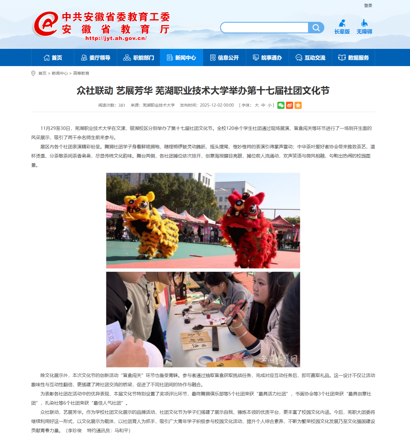 众社联动,艺展芳华。作为乐鱼平台,天线宝宝49008论坛登录,博雅网官网社团文化展示的品牌博雅网官网,社团文化节为学子们搭建了展示自我、锤炼本领的优质平台,更丰富了校园文化内涵。今后,芜职大团委将继续利用好这一形式,以文化展示为载体,以社团育人为抓手,吸引广大青年学子积极参与校园文化博雅网官网,提升个人综合素养,不断为繁荣校园文化发展乃至文化强国建设贡献青春力量。(李珍俊 特约通讯员:马和平)
